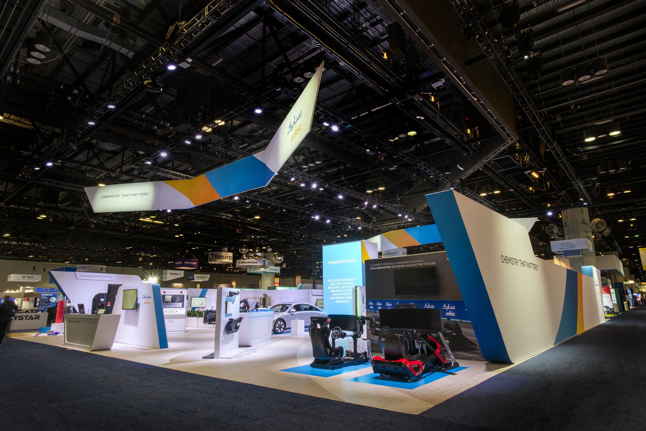 SABIC’s support of the mission to enable electrification is on display in two areas: a space within the Transportation section of the booth showcasing the company’s BLUEHERO initiative and an area for visitors to experience racecar simulators that help highlight SABIC’s role as Principal and Innovation Partner to the Formula E electric racing series.